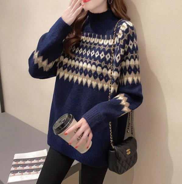 반폴라 니트 스웨터 루즈핏 데일리 세련된 레트로 감성 블랙 네이비 브라운 3색상 프리사이즈
