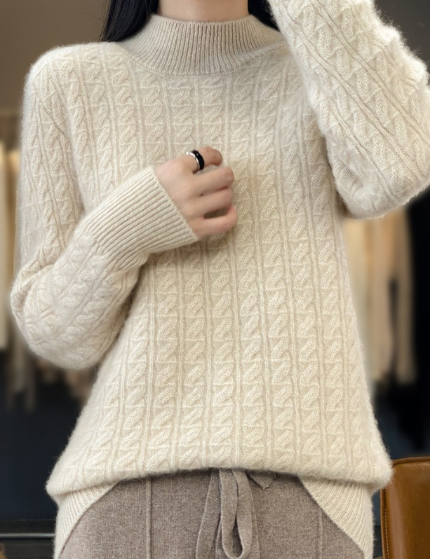 풀오버 반폴라 캐시미어 루즈핏 니트 스웨터 반목폴라 심플 레트로 감성 4 색상 프리사이즈
