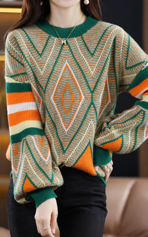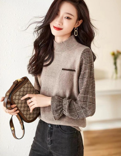 여성 가을 겨울 긴팔 니트 반목폴라 스웨터 셔링 체크소매 복고풍 맨투맨 3색상 3사이즈