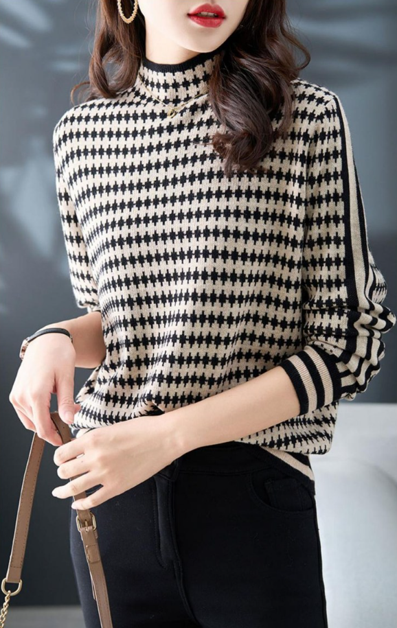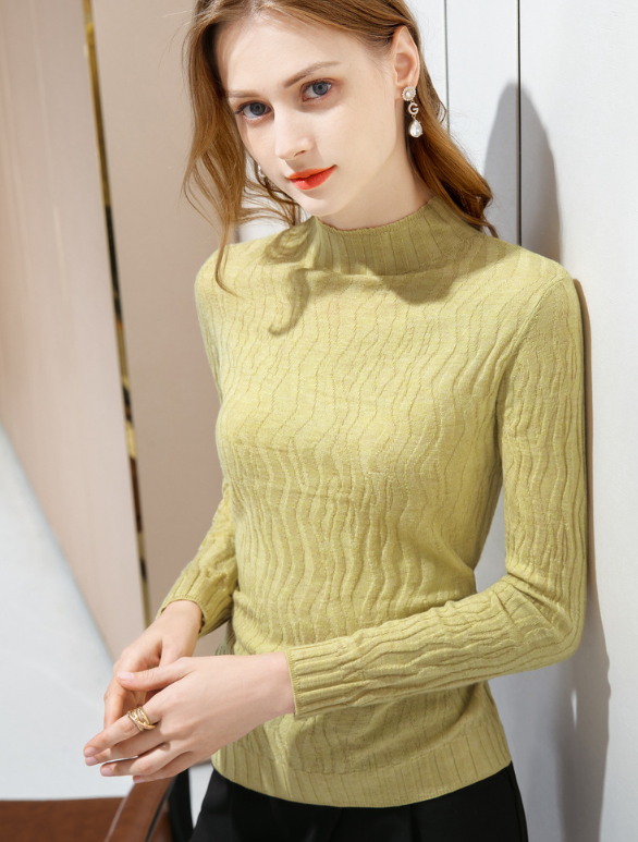 하프 터틀넥 긴팔 세련된 물결무늬 니트 티셔츠 여성 간절기 목폴라 단색 3 색상 프리사이즈